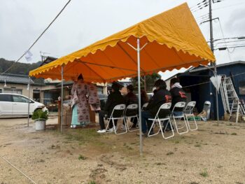 あいにくの雨かと思いましたが雨降って地固まる、地鎮祭日和となりました。T様おめでとうございます。